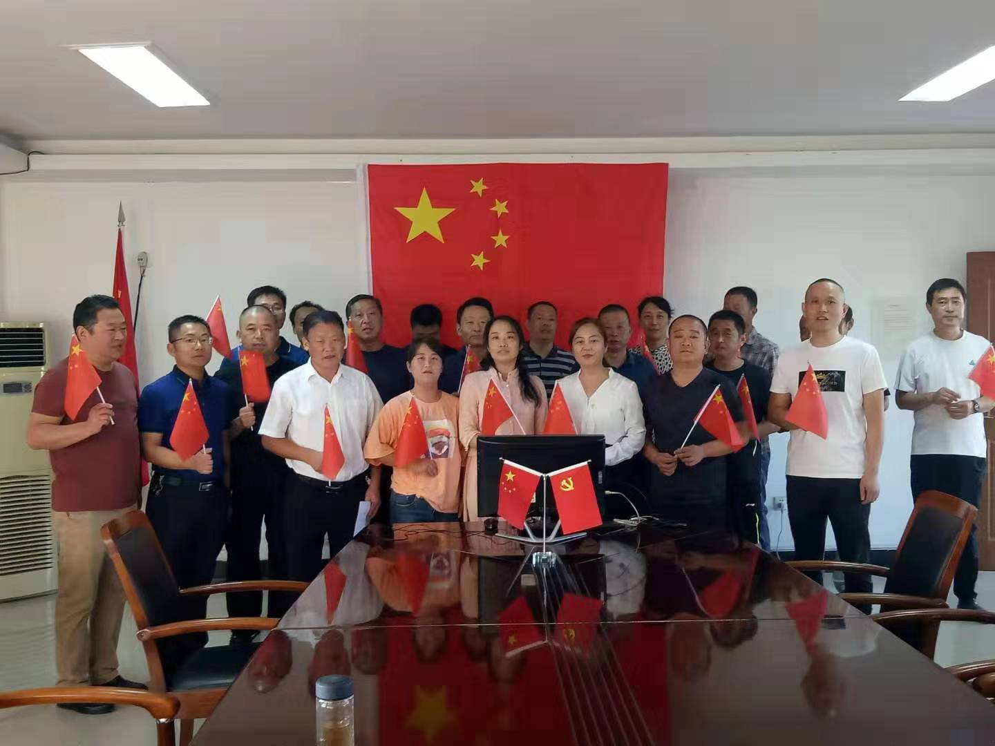 當(dāng)《義勇軍進行曲》音樂響起,阜陽市鹽業(yè)人揮舞著五星紅旗齊聲高唱“起來,不愿做奴隸的人們……”,雄壯嘹亮的國歌聲,在黨員活動室內(nèi)久久回蕩。隨后,大家又齊聲高歌《歌唱祖國》,“五星紅旗迎風(fēng)飄揚,勝利歌聲多么響亮”,唱出對中華人民共和國成立70周年最美好的祝福和熱愛。
