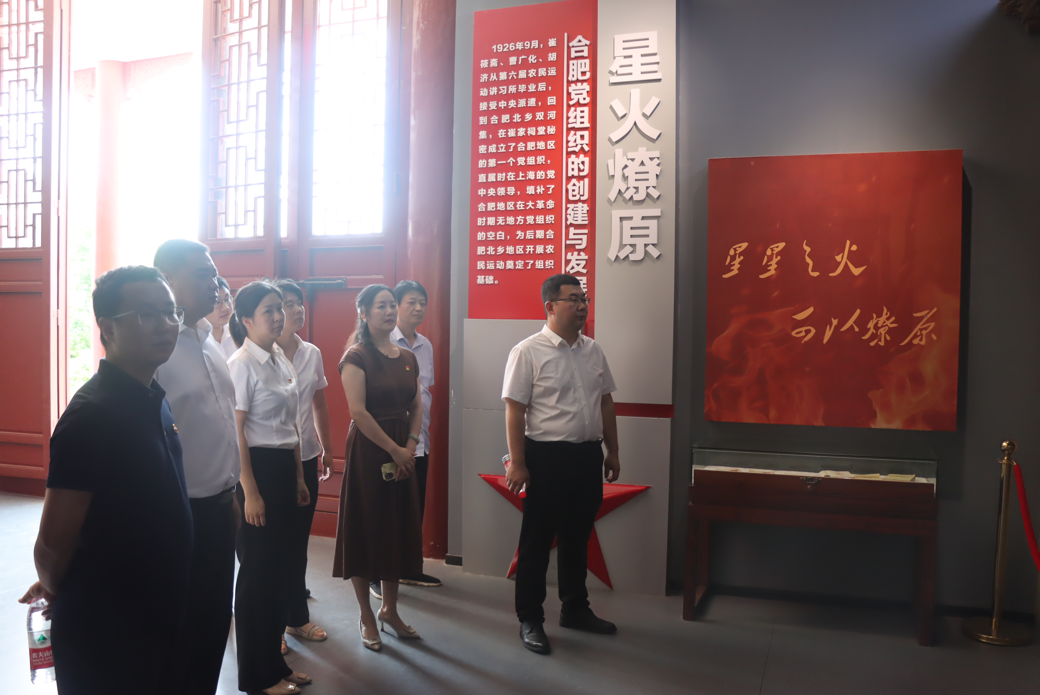 中共合肥北鄉支部紀念館是合肥市愛國主義教育基地、黨史教育基地、黨風廉政建設教育基地,同時也是為紀念合肥地區第一個中國共產黨組織(中共合肥北鄉支部)而建。大家跟著講解員認真了解了中共合肥北鄉支部創建歷史背景與開展革命光輝歷程,走進崔筱齋紀念館,大家在簡樸莊重的展廳里認真了解了崔筱齋烈士的生平履歷、革命歷程。展廳里珍貴的文物實物、翔實的檔案資料,吸引大家駐足良久并詳細詢問有關情況,深入了解了合肥北鄉黨支部艱苦卓絕的奮斗史和光輝歷程。懷著無比崇敬的心情,黨員們面向黨旗重溫入黨誓詞。