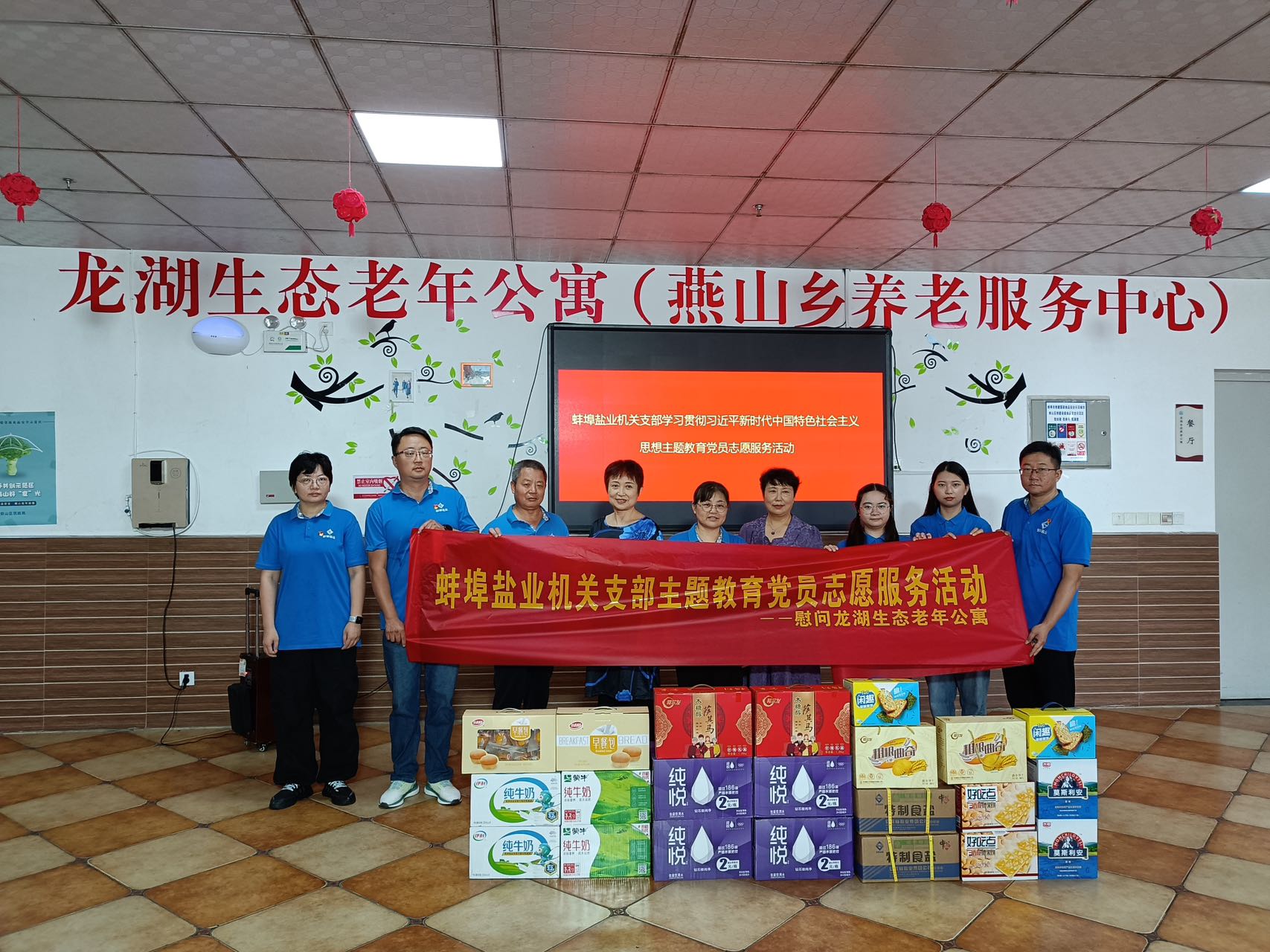 為深入推進學習貫徹習近平新時代中國特色社會主義思想主題教育,傳承和弘揚中華民族尊老敬老的傳統美德,營造愛老助老的良好社會氛圍,7月29日上午,蚌埠市鹽業公司機關黨支部組織黨員志愿者到龍湖生態老年公寓開展主題教育黨員志愿服務活動。