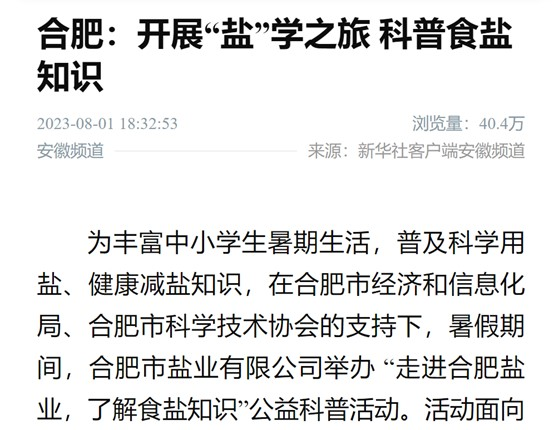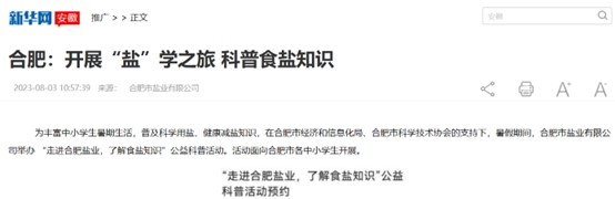 新華網安徽等多家媒體報道合肥食鹽科普游