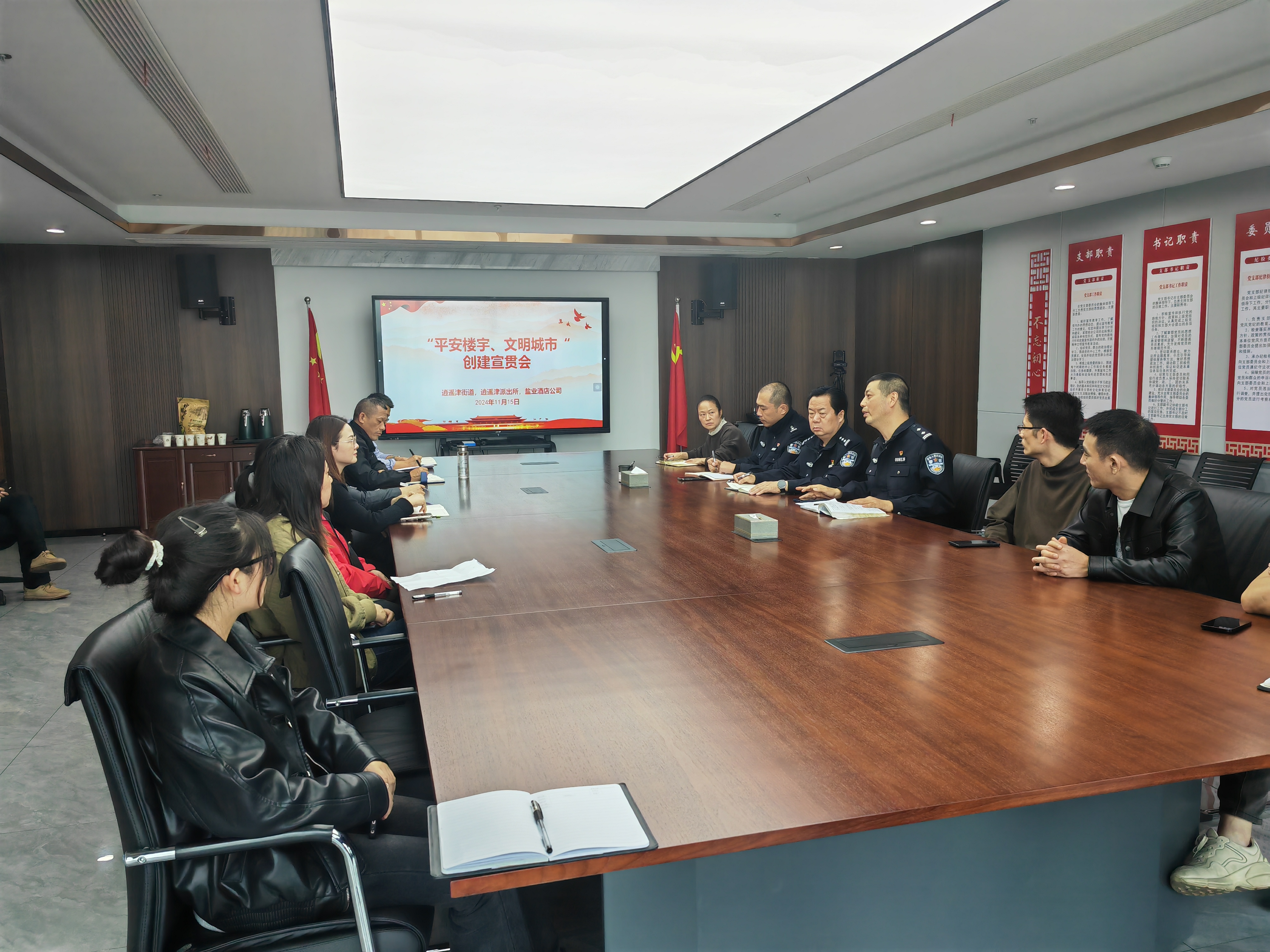 11月15日下午,酒店公司聯合逍遙津派出所、逍遙津街道及入駐項目大客戶在徽鹽安徽中心召開“平安樓宇、文明城市”宣貫會。